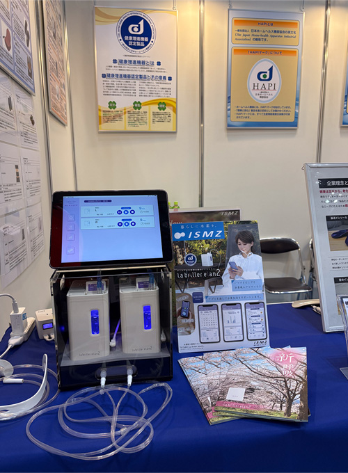 一般社団法人日本ホームヘルス機器協会様のブースに健康増進機器認定製品として「ポータブル水素吸入器ラブリエエラン2」を展示していただきました。
