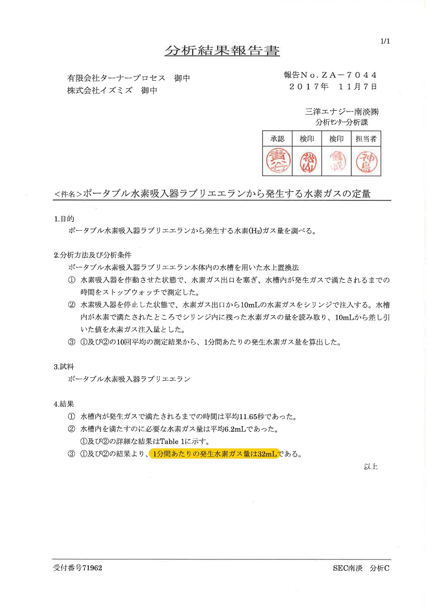 The small body can generates 30 mL hydrogen of 99 % or more purity in a minute.
