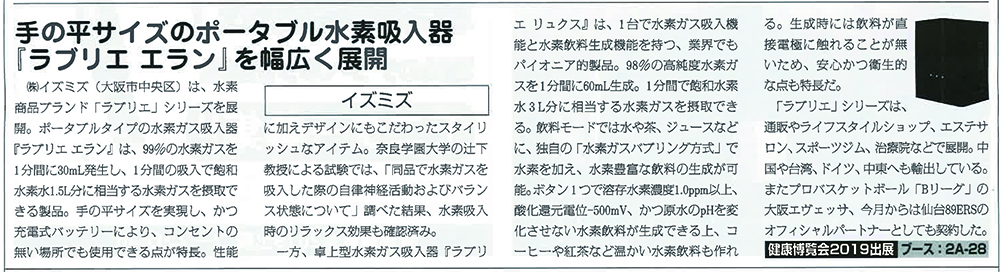 弊社の『ポータブル水素吸入器ラブリエエラン』が『健康増進機器認定製品』として紹介されました。